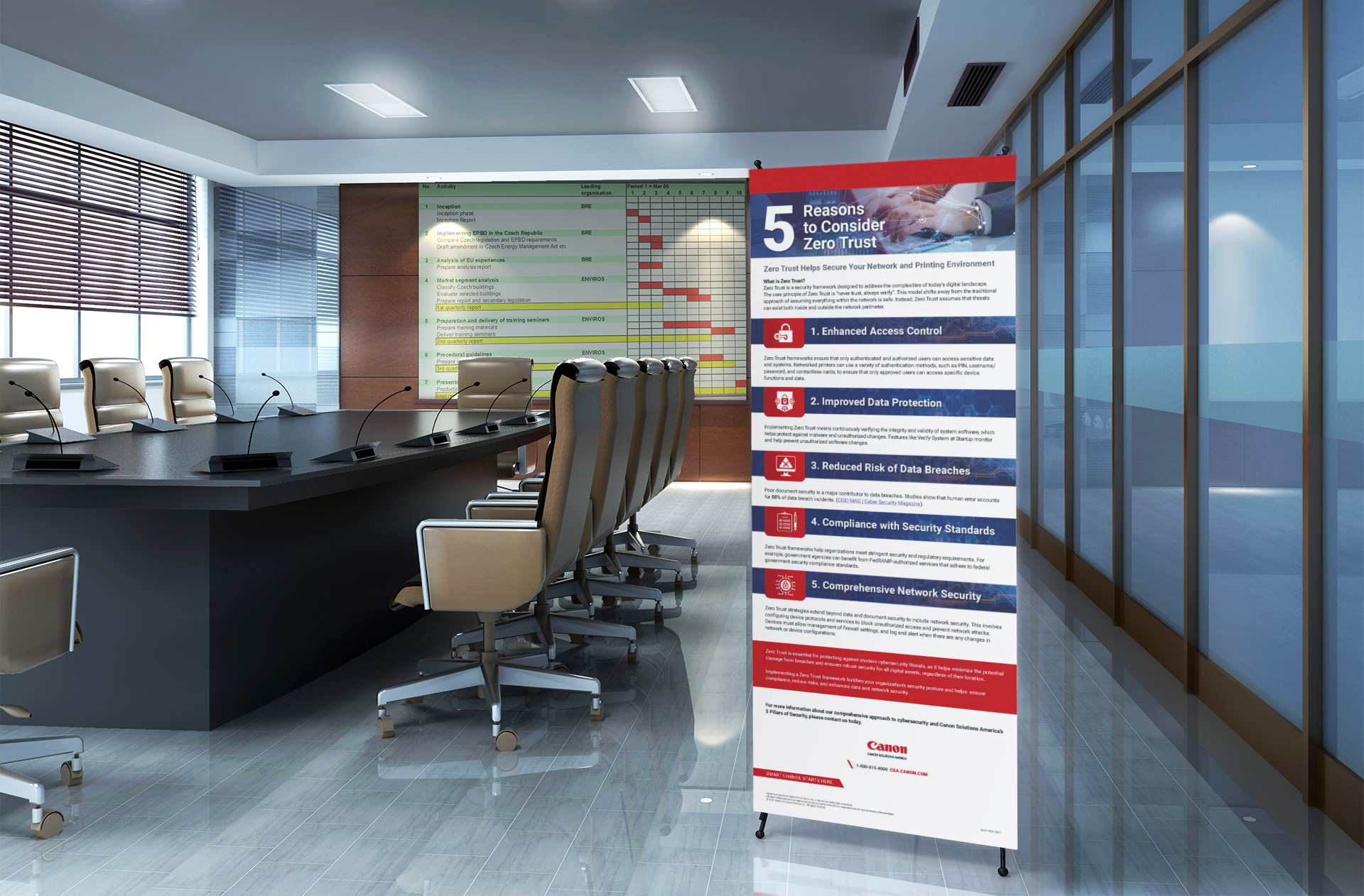 The request was simple; develop a communication showcasing Canon's cybersecurity offering, for both print and digital download. I envisioned it as an infographic that worked both for hand-held and stand banner applications.