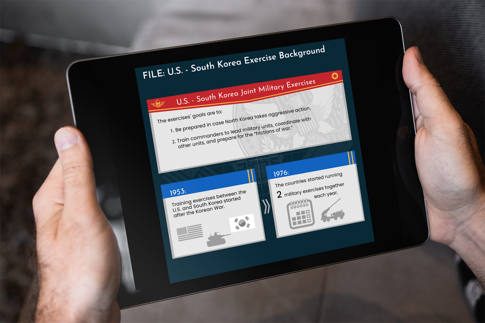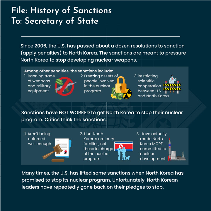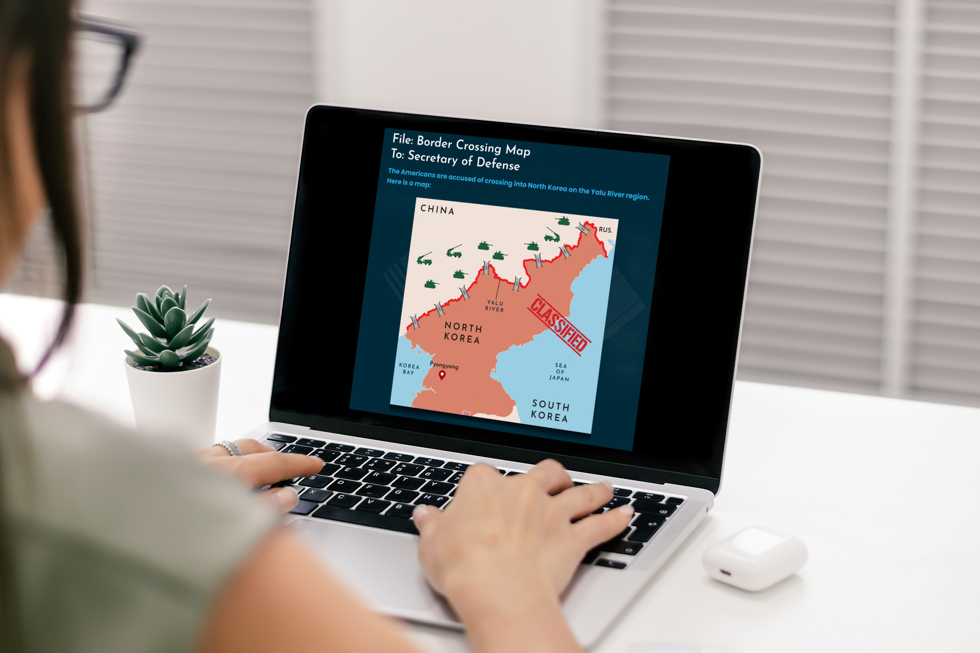iThrive Games asked me to develop the graphics for a game module, one that taught decision making under pressure for the teen student market, against the background of US/North Korea relations. I provided research, design, and layout services, along with optimizing each screen for their custom game platform.