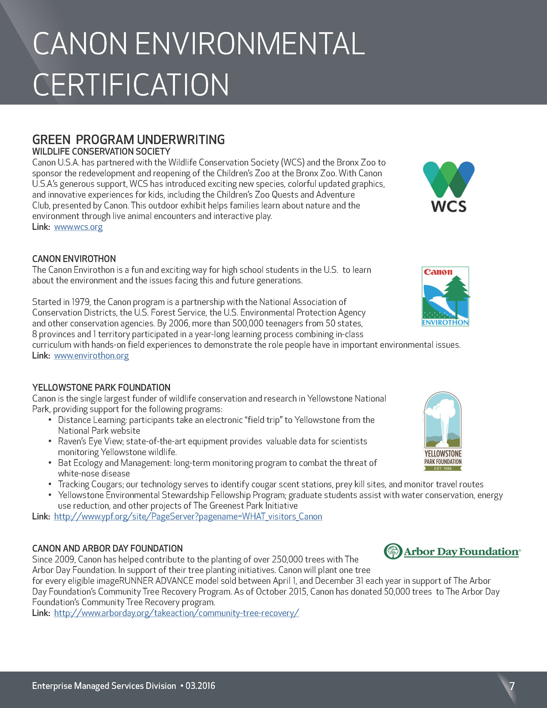 The second is the Canon Sustainability Roadshow, where I cover Canon's environmental ethic, life cycle analysis from sourcing to recycling, and green innovations and sustainable design within its product line. Our sales team's awareness about Canon's green methodology became a significant business differentiator from pre-sales all the way to contract renewal.